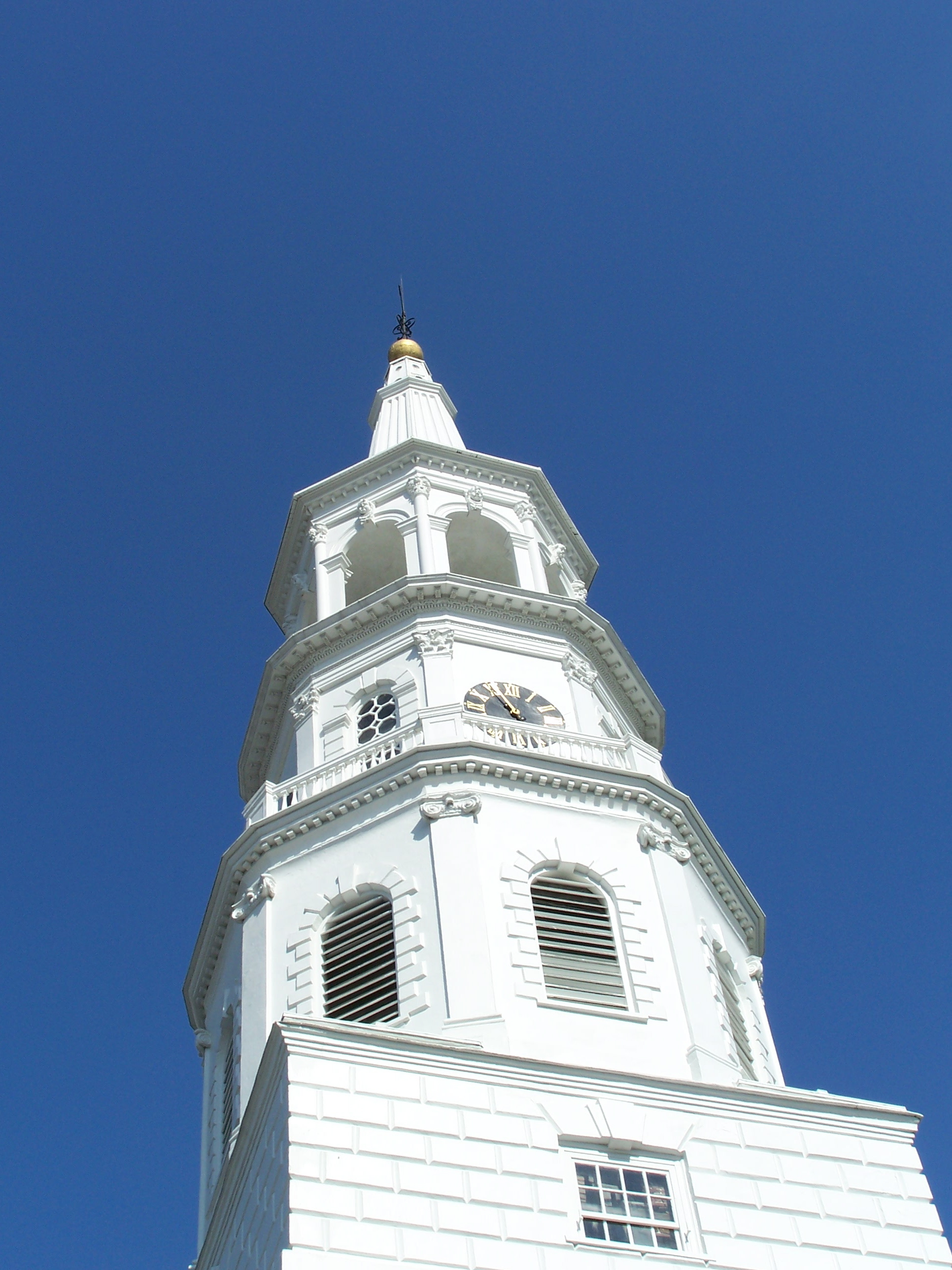 Here’s a photo of St. Phillips Episcopal Church (founded in 1680!) located in downtown Charleston, SC. It’s a gorgeous church, one that has been photographed and painted oh so many times. It’s in the heart of the city, near the market and all the other happening locations.