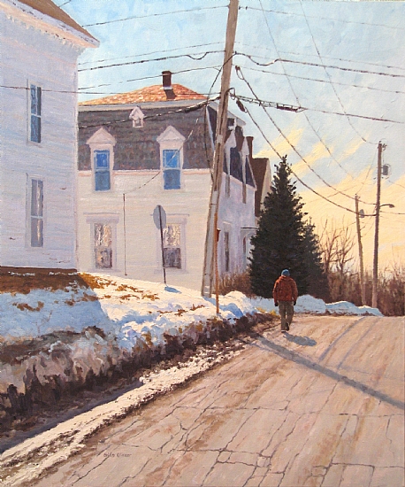 Brian Kliewer. A nice guy and a fabulous artist. You can just feel the chill in the air in this painting, can’t you? Brian was a Facebook friend several years ago, and I truly enjoyed his posts, besides the beautiful paintings that he posted he would talk about life in Maine, show photos of the big snow storms and other various subjects. Brian is no longer on Facebook and I do miss his posts, got tired of all the FB changes I guess, heavy sigh… We also ran into his work at Mars Hall Gallery in Port Clyde a few years ago… as fabulous in person as it was on the Internet. Brian has a great website, I urge you to check it out, he lists the galleries he’s in, so if you’re in the neighborhood, pop on in! Here’s a little blip about Brian from his website: