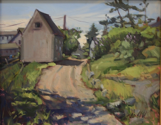 Alison Hill is an extremely talented artist and the nicest person in the world. They just don’t come any nicer. Her house is her gallery, and a fabulous one it is. Paintings fill it from floor to ceiling. If you’re on Monhegan you will undoubtedly see Alison set up somewhere painting, and several hours later she’ll be in another location. She is amazing. This painting is entitled Rope Shed. It’s the little building that you pass on your way through town, where people hang things they’ve found, or you can read about what’s going on where… and we think she captured it beautifully. Check out Alison’s website, it’s a good one! Here’s a blip from her website, catch you back here tomorrow!
