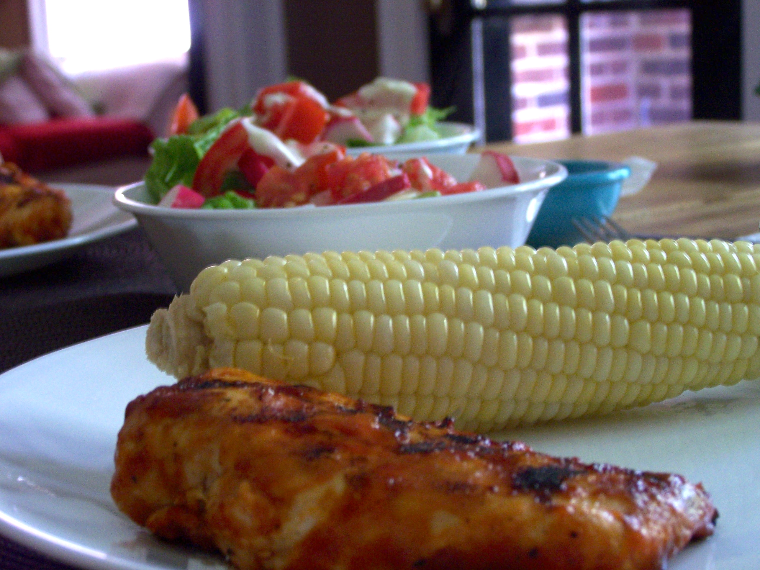 Here is the final result… let me tell you, Fred cooked this chicken on the grill to perfection. It was awesome! There is nothing like barbecue chicken on the grill, fresh corn on the cob and a nice crispy salad!