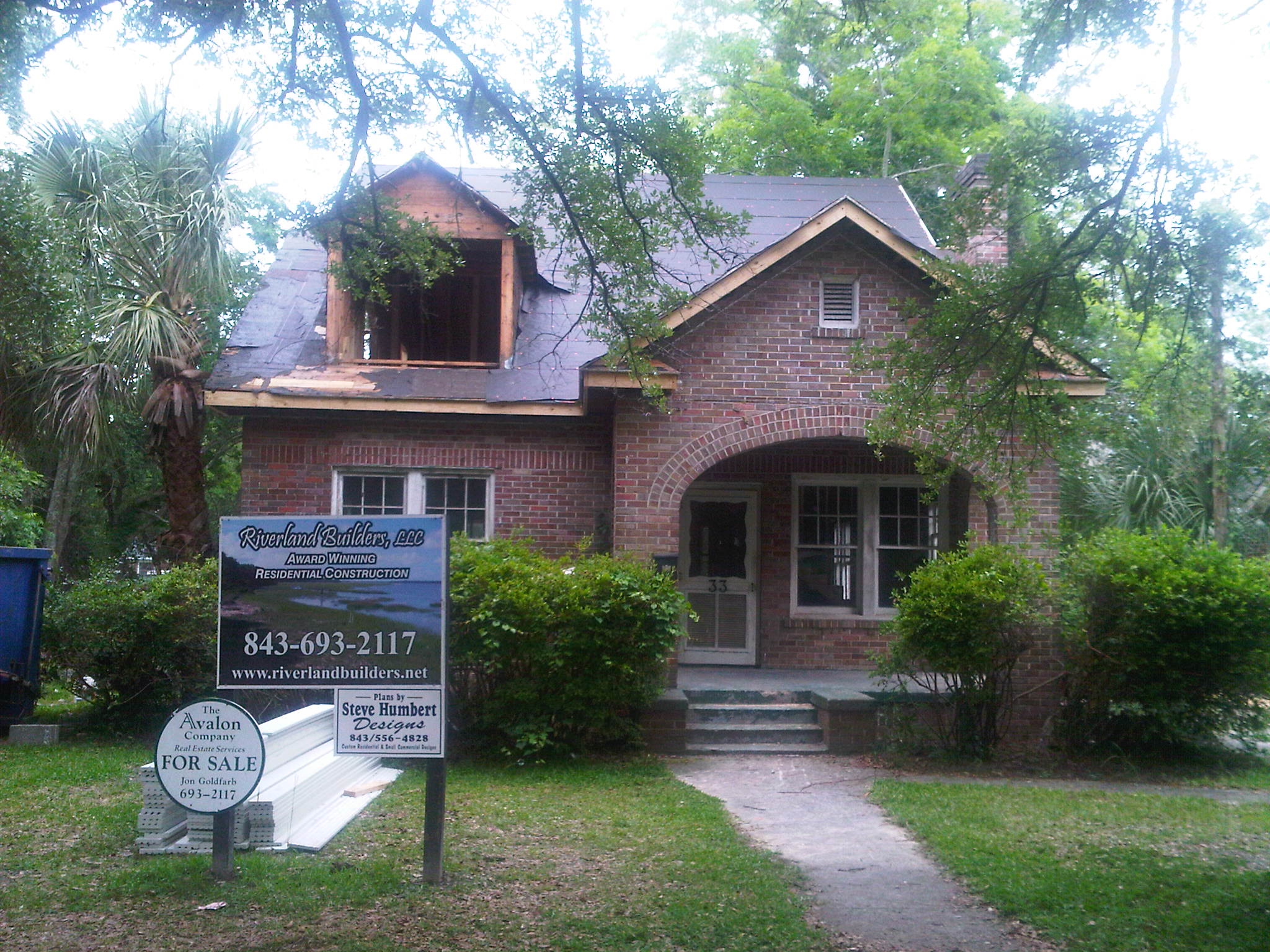 The horrible fence is now gone, whoa did that ever help the appearance! They’re adding on a laundry room and a porch (rumor has it)… will keep y’all posted on the progress. It’s going to be very cool! I hear they’ve added a bit more upstairs, you can see by the brick how much has been added… new roof which looks very nice… This project is being taken on by Riverland Builders – website is coming soon!