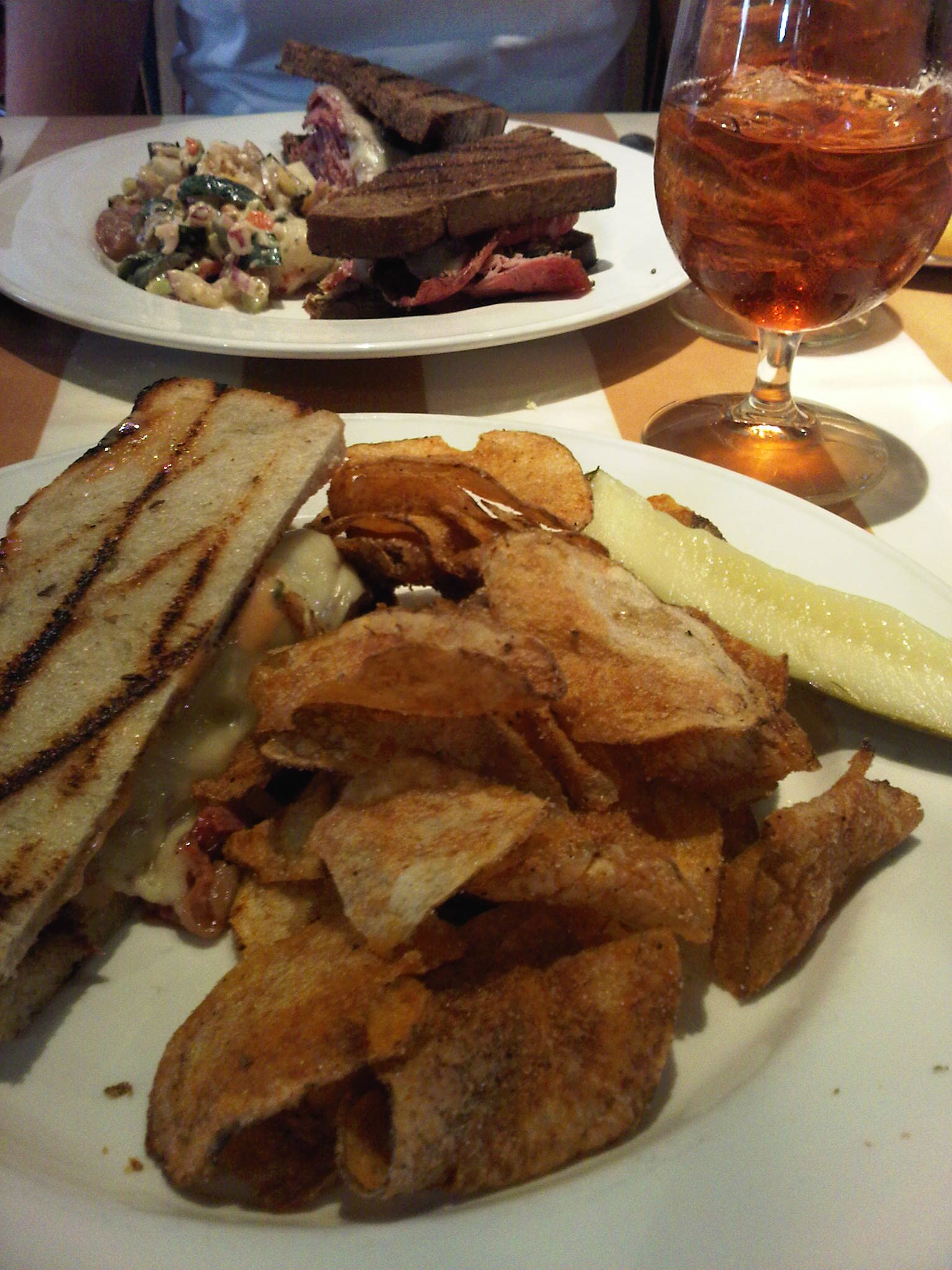 Slightly North of Broad is a wonderful restaurant located in Charleston’s Historic District, located on East Bay Street, they are located in a convenient place for both locals and visitors alike. It has a great atmosphere and friendly people working. It can be busy, so be patient. A few weeks ago Fred and I had a delicious lunch at Slightly North of Broad, (also known as S.N.O.B. ha ha, brilliant) – I was there years and years ago. They have something called an EXPRESS LUNCH, (changes daily) which is an entree, soup or house salad and coffee or tea. A $10.95 lunch at a higher end restaurant proves to be quite a deal. However, that day we both saw something else on the menu that grabbed our attention… After much consideration, Fred ordered a Pastrami Sandwich… it wasn’t any old pastrami sandwich, their menu changes daily so I don’t have the specifics, (Google Slightly North of Broad Pastrami, ha ha… no kidding! People love the stuff!), he ordered potato salad as his side. I had a bite, it wasn’t ordinary potato salad, it was very very nice. Now this was no Dr. Oz approved lunch, however, I did the best I could! The restaurant didn’t make a mistake in the photo below, I asked for only 1/2 sandwich, and they kindly obliged. I love restaurants who realize not everyone likes a large portion. I ordered homemade potato chips with my sandwich- THE BEST EVER! I haven’t had a reuben since I was a kid and it was SO GOOD. I had a big ole smile on my face! (Click HERE for MENU).