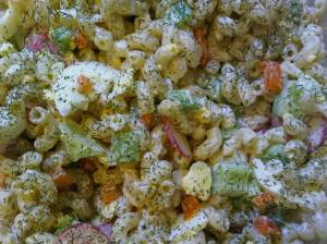 This is what I had in my pasta salad, remember, there are no rules! I only used a little red onion because I didn’t want it to be too strong. I happened to have 3/4 of a banana pepper left and let me tell you it was tasty in this pasta salad!