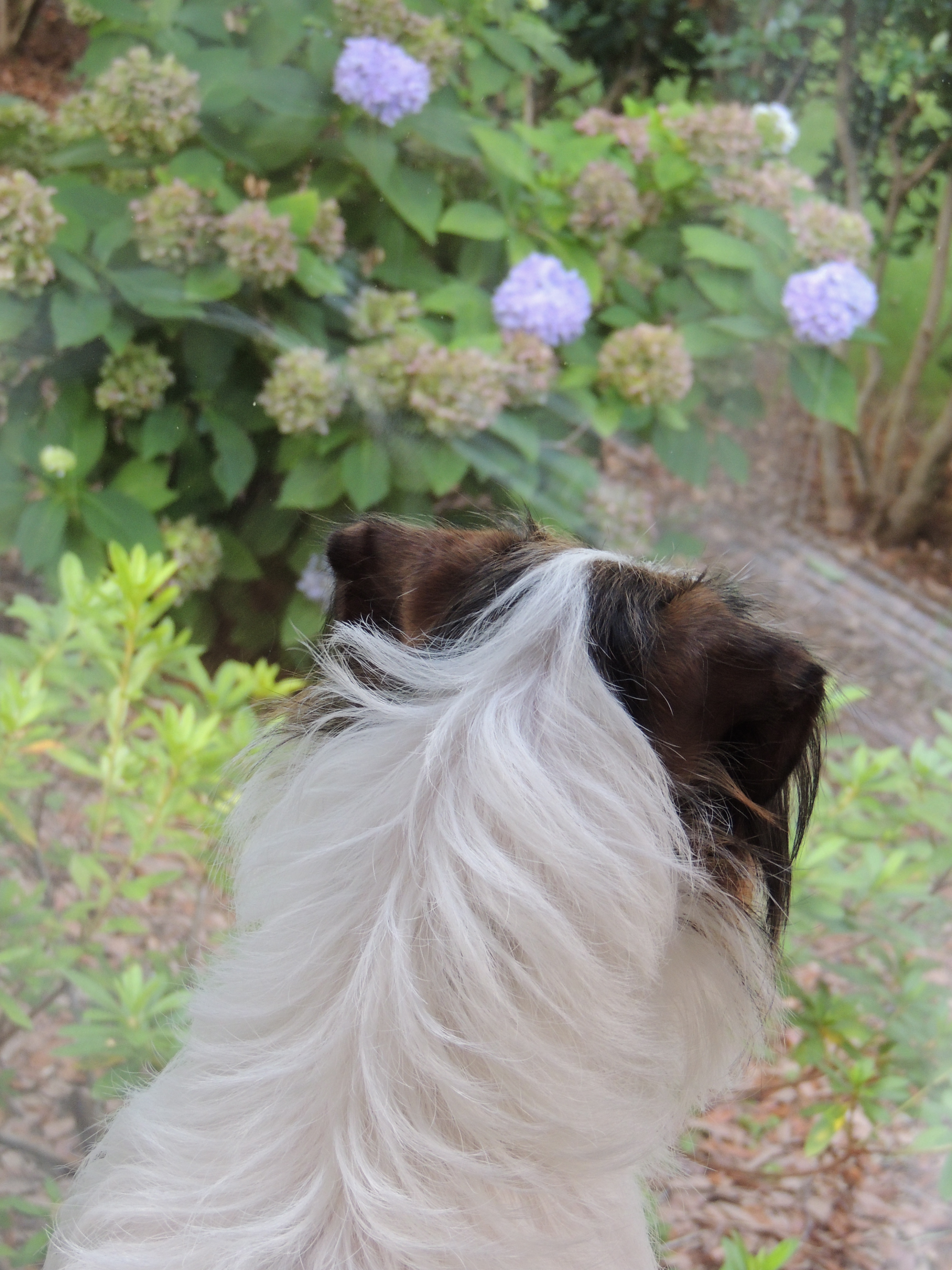 Add fresh chopped (or in my case snipped with scissors) basil and thyme (again, stripped from the stalk).