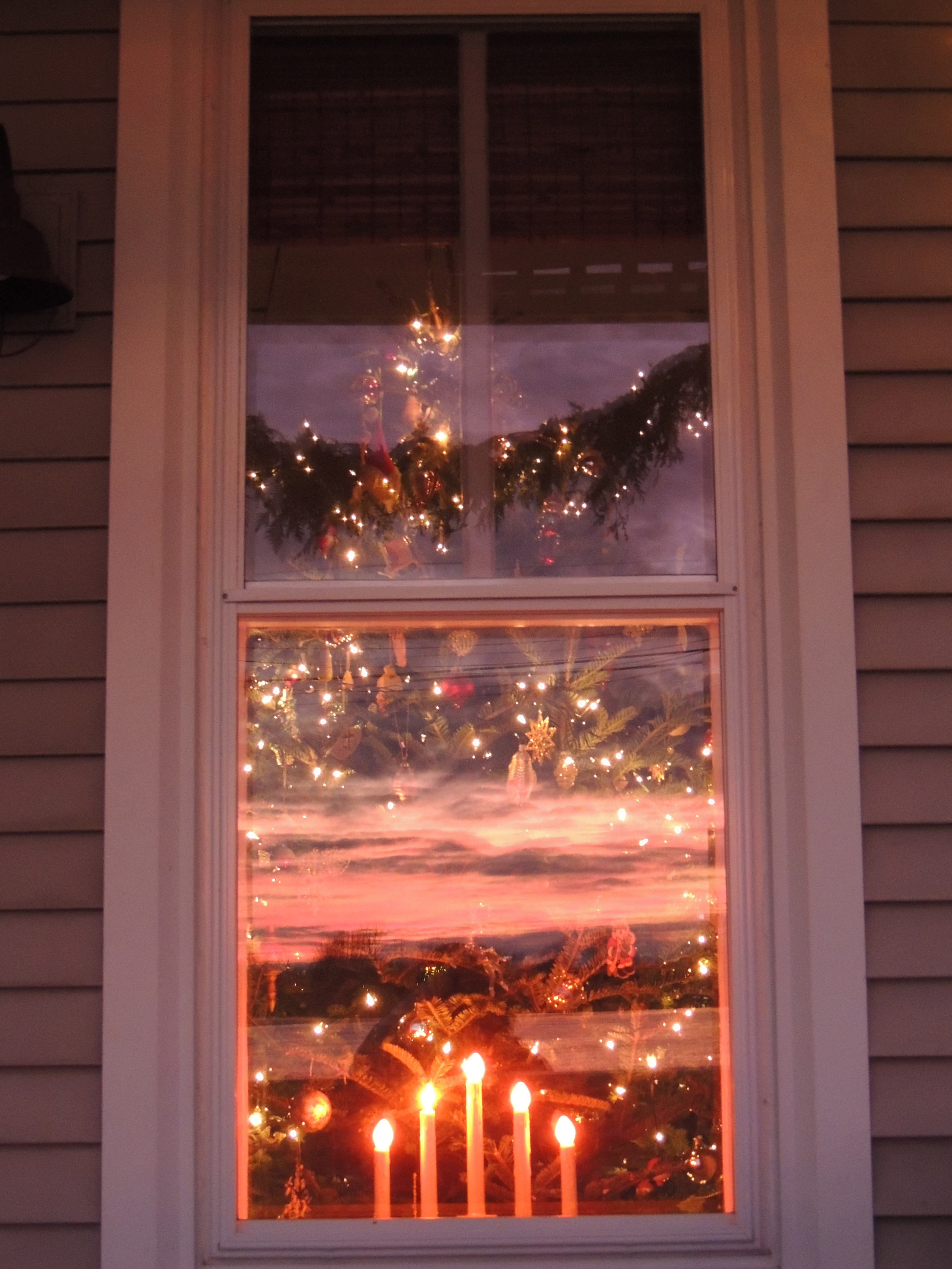 HAPPY THANKSGIVING! This is a photo I took last year while visiting my parents… I was up and out early taking photos of a beautiful sunrise (something to be thankful for all in itself!)… I was walking back to the house and saw that my dad plugged in the Christmas tree and the lights in the window… When you look at it you can see the reflection of the sunrise…