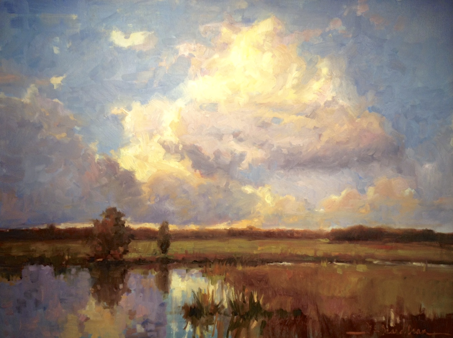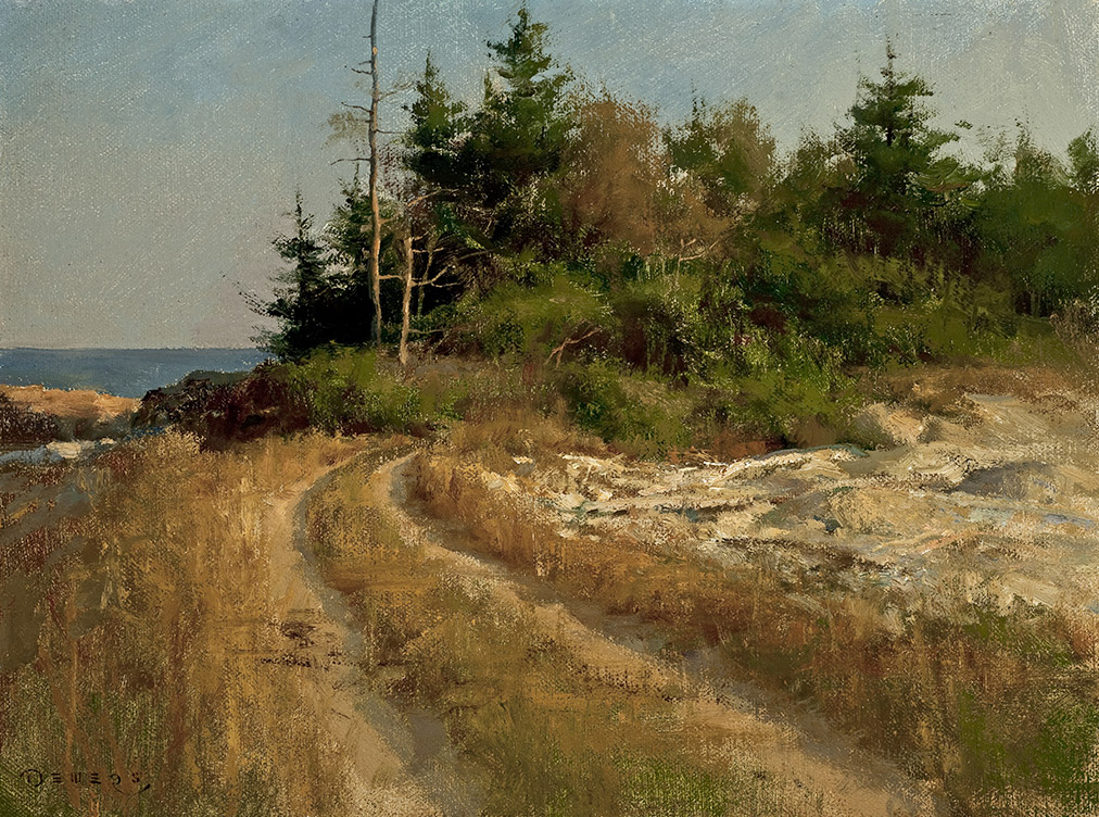 Isn’t this a fabulous painting? I love the warm palette… it’s that nice golden light warmth that I find so appealing in paintings. The dirt path with it’s subtle shadows is fabulous, as are the trees and sky. It makes this come together to be one fabulous piece of work! Those two dead trees… spectacular! Don paints a diverse number of subjects from maritime art to landscapes, each as fabulous as the next! Don’s art has graced the covers of many magazines, whoa! He also gives workshops (check out his website for more information!)… I also see that he’ll be a judge at Plein Air Easton. Now THAT’S an event I would love to make it to!