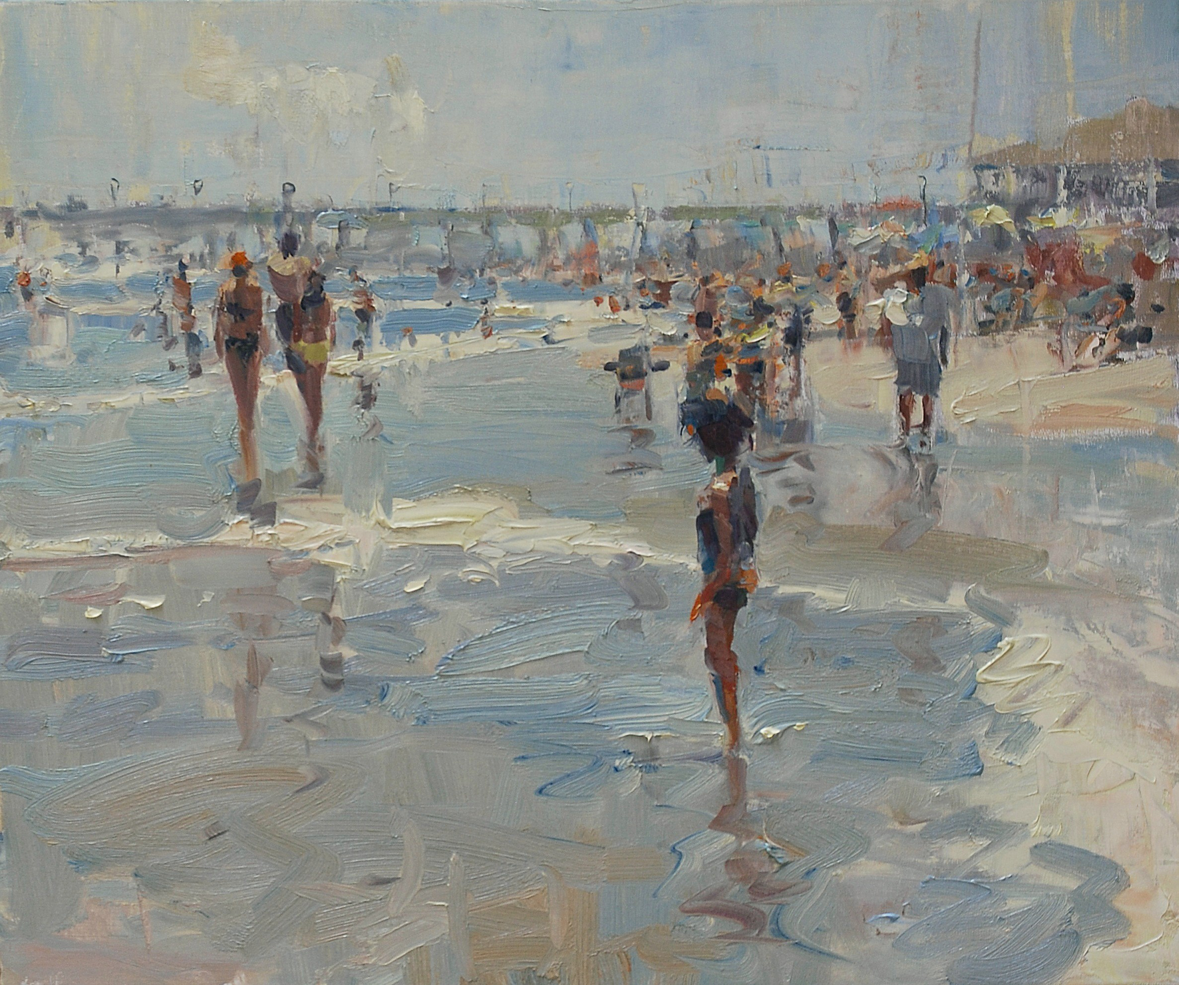 Speaking of light… James Richards, an awesome plein air painter who’s style I adore has been turning out some incredible beach scenes. They are loose and leave something to your imagination which is part of the beauty of his work. Can’t you just feel the sun beating down upon you in this painting? Hear the ocean and the buzz of excitement from the people? Feel a bit relaxed after looking at this? I can even feel the water lapping at my ankles as the tide goes in and out… I love how Jim’s work allows you to use your imagination in the people’s faces. I think it’s amazing how he has the ability to do that. (Image above from JRichardsStudio.com)