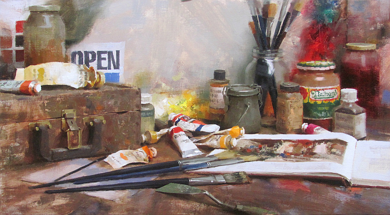 Mark Boedges, I am thrilled to have run across his work! Just look at these paintings! I love My Gear (above) great subject matter, fabulous colors, and wonderful loose strokes. This painting is truly a delight to look at. I can almost smell the oil paint… I swear I can! Anyone who paints or truly loves art will love this painting!