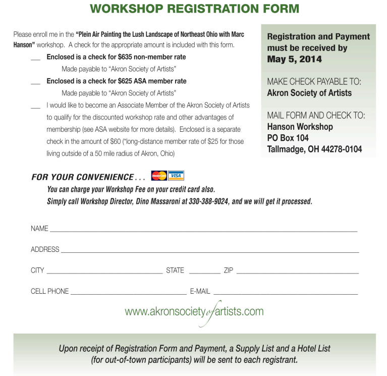 WORKSHOP ALERT: Marc Hanson – Akron, OH!